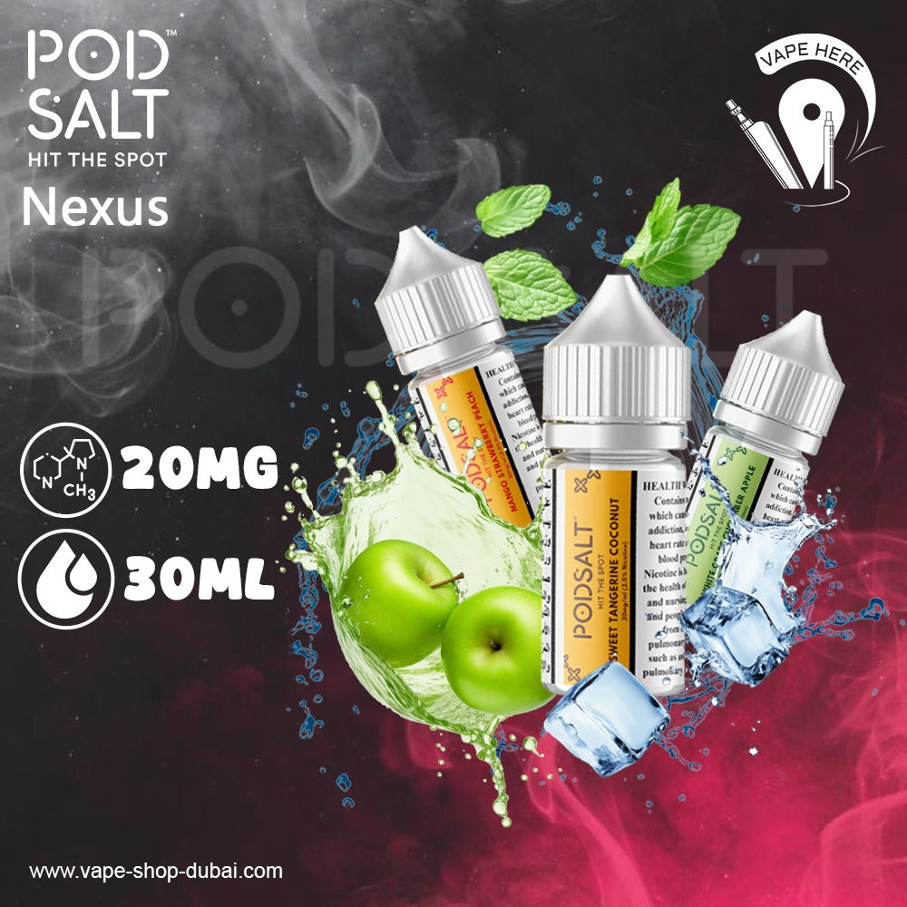 Whether you are looking for POD SALT NEXUS SALTANIC 20 MG 30ML or other SaltNic juices all are available to order Online from Vape Shop Dubai with a unique Delivery service in UAE, Abu Dhabi, Dubai, Al Ain, Ras Al Khaimah, Ajman, Sharjah, Ruwais.