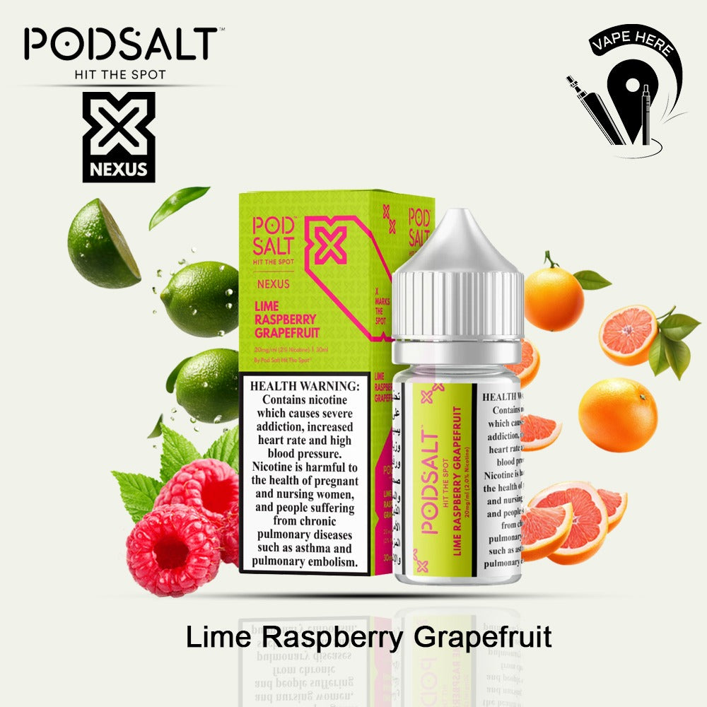 Bursting with sweetness, fresh from the vine and berry bushes, lose yourself in the Nexus of cool fruity flavors. Combining juicy grapes bursting with sweetness, and fragrant strawberries finished with an icy chill.Lime Raspberry Grapefruit: