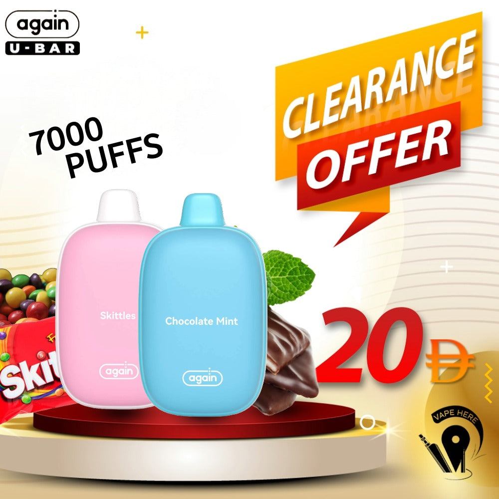 Whether you are looking for Again U-Bar or other Disposable available to order Online from Vape Shop Dubai with a unique Delivery service in UAE, Abu Dhabi, Dubai, Al Ain, Ras Al Khaimah, Ajman, Sharjah, Ruwais.