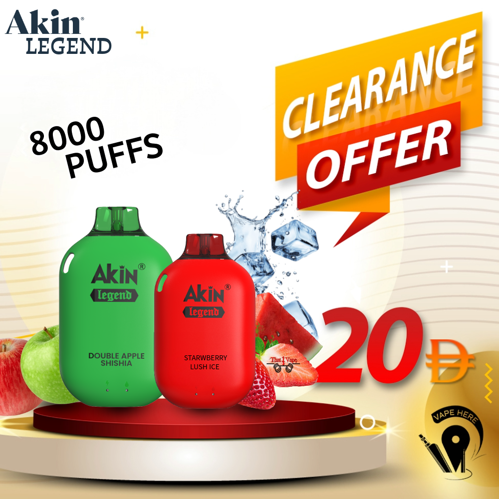 Whether you are looking for AKIN legend 8000 or other Disposable available to order Online from Vape Shop Dubai with a unique Delivery service in UAE, Abu Dhabi, Dubai, Al Ain, Ras Al Khaimah, Ajman, Sharjah, Ruwais