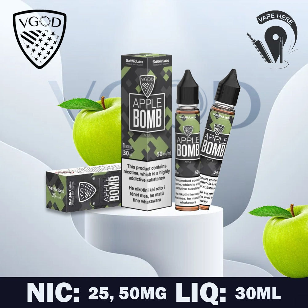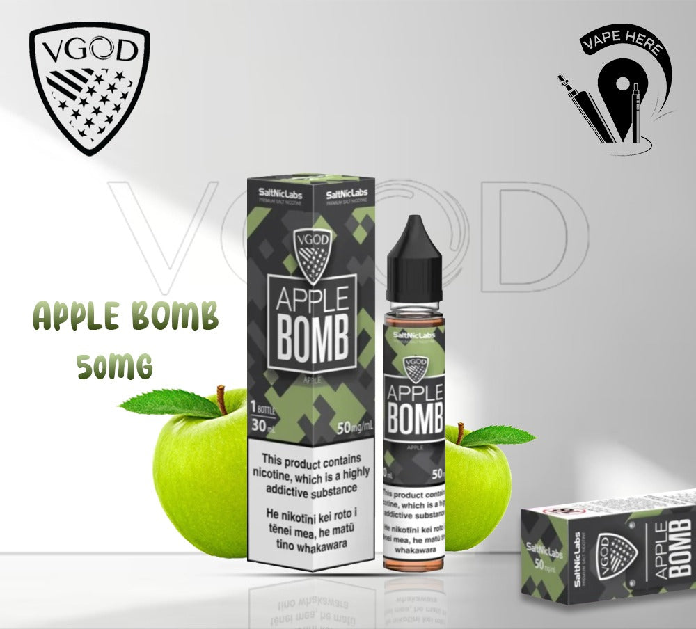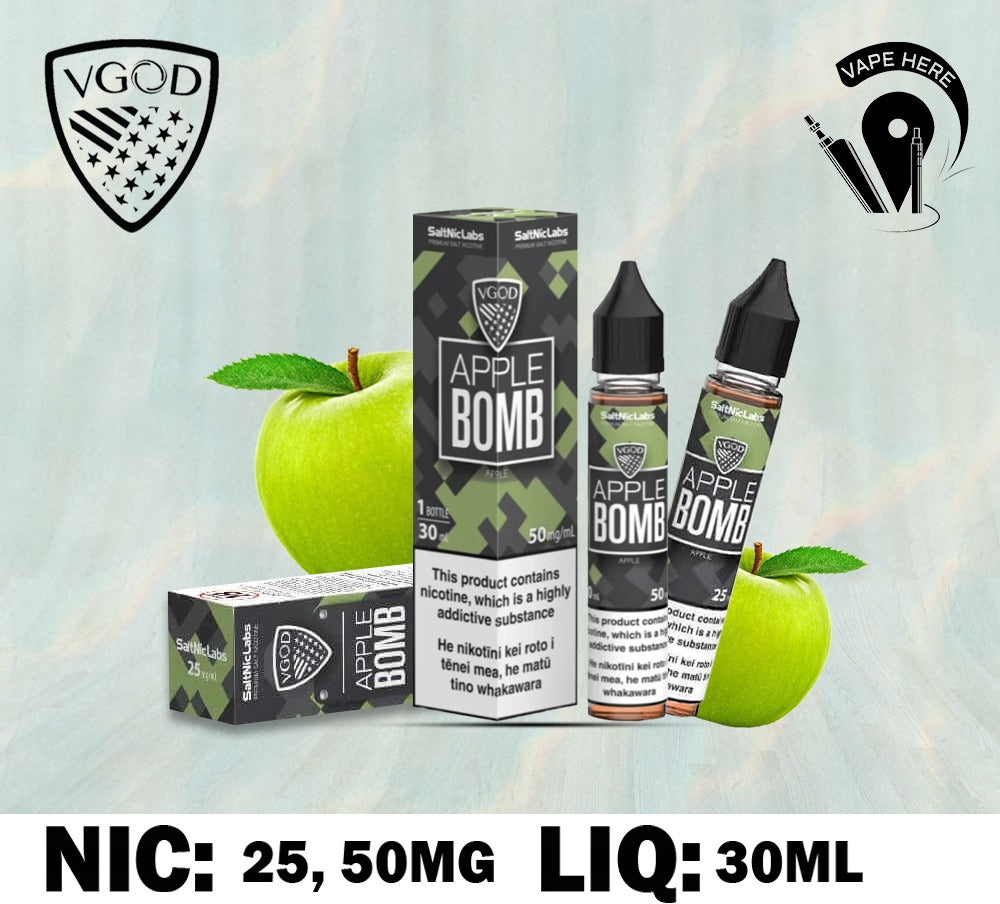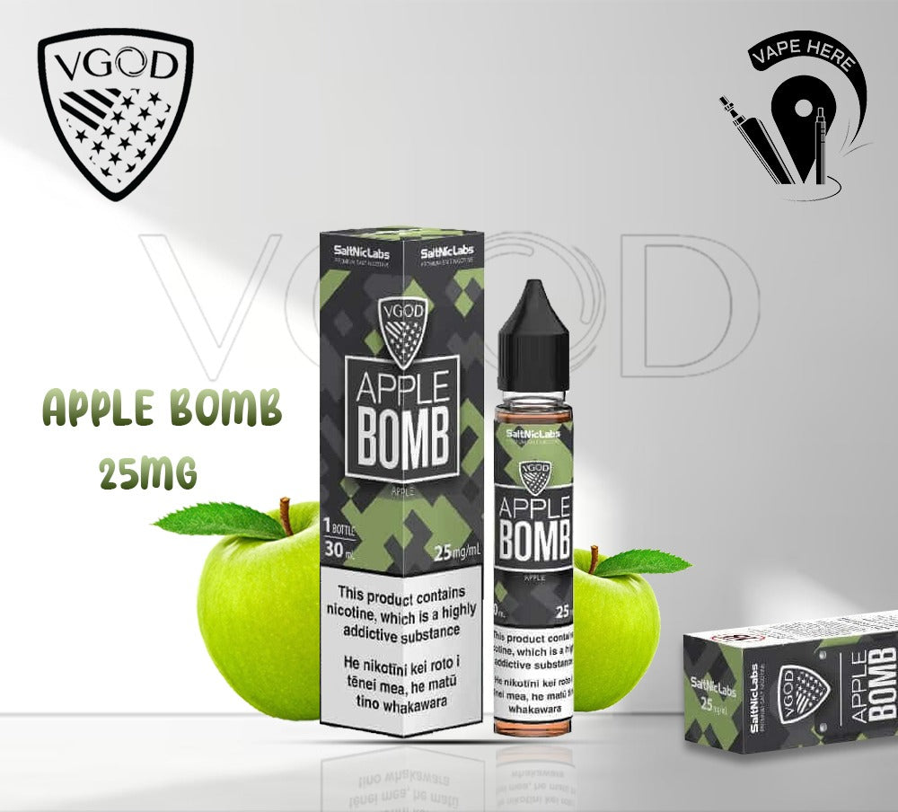VGOD Apple Bomb Nic Salts is a multi-layered burst of a juicy Granny Smith apple at the start of the pull that progresses with a rich sour tartness of a sweet candied sour apple belt for the finish. VGOD’s Apple Bomb SaltNic is for low wattage refillable devices only.