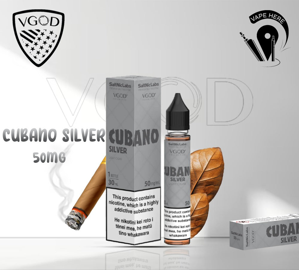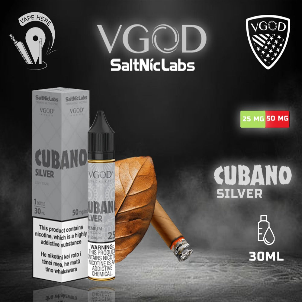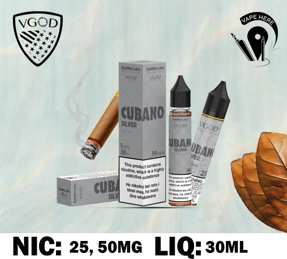VGOD Cubano Silver Nic Salts is for the tobacco flavor enthusiasts. It is a classic Cuban cigar as the primary note mingled with creamy custard, hints of vanilla, brown sugar and honey. The SaltNic kick is excellently smooth and provides long lasting satisfaction. VGOD Cubano Silver Nic Salts is for low wattage refillable pod devices only.