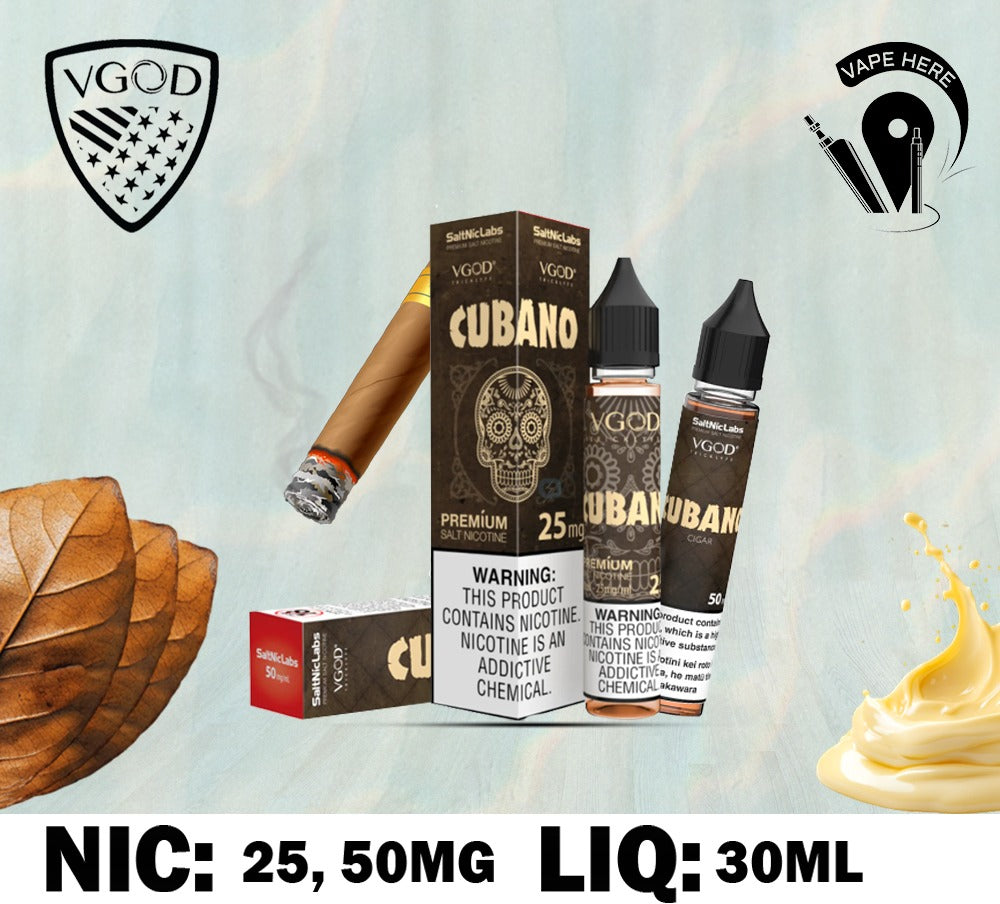 VGOD Cubano Nic Salts is mainly a tobacco flavored blend of nicotine salt, borrowing hints of rich creamy vanilla and smooth smoky tobacco notes to create a flavor for those trying to quit analog.