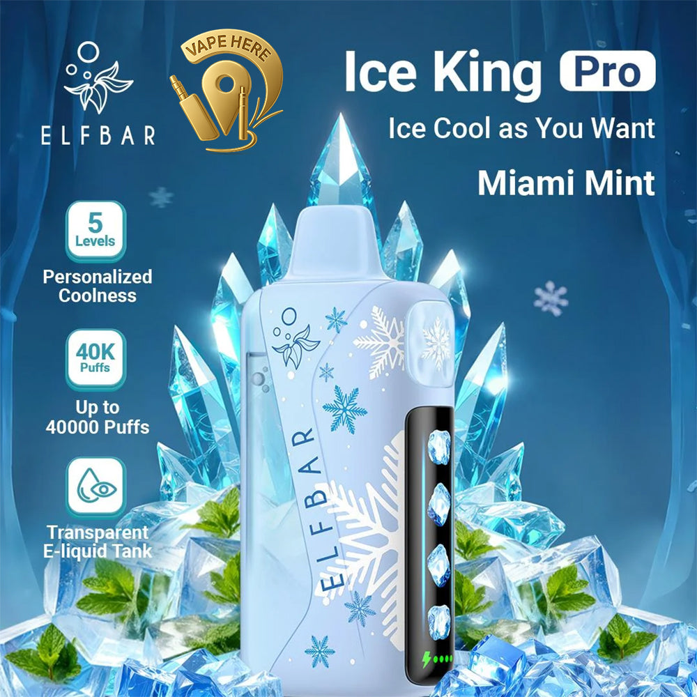 Popular flavors in the UAE include Watermelon Ice, Blueberry Ice, Miami Mint, and Peach Ice. The Ice King Pro 40K is known for its strong cooling effect and consistent smooth flavor delivery.