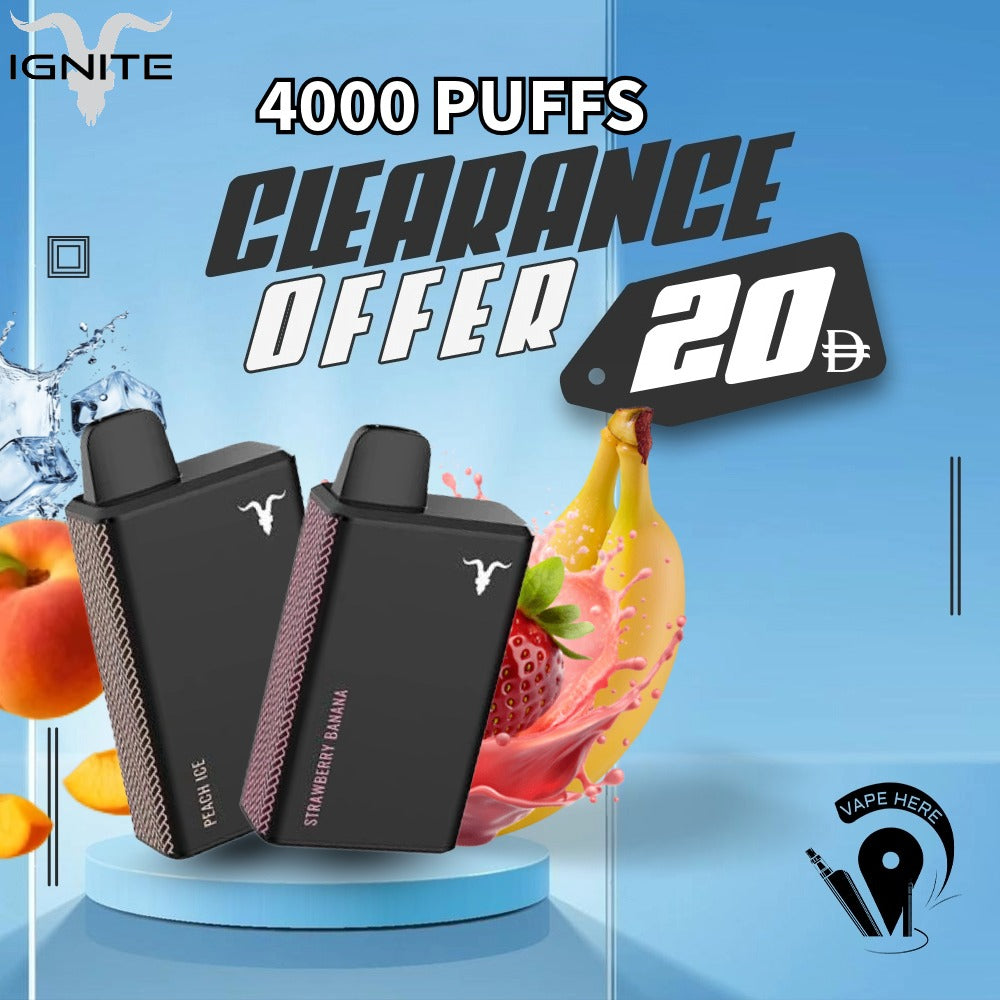 IGNITE – V40 (4000+ Puffs) Disposable Vape available to order Online from Vape Here Store with a unique Delivery service in UAE, Abu Dhabi, Dubai, Al Ain, Ras Al Khaimah, Ajman, Sharjah, Ruwais.
