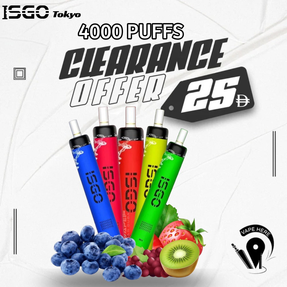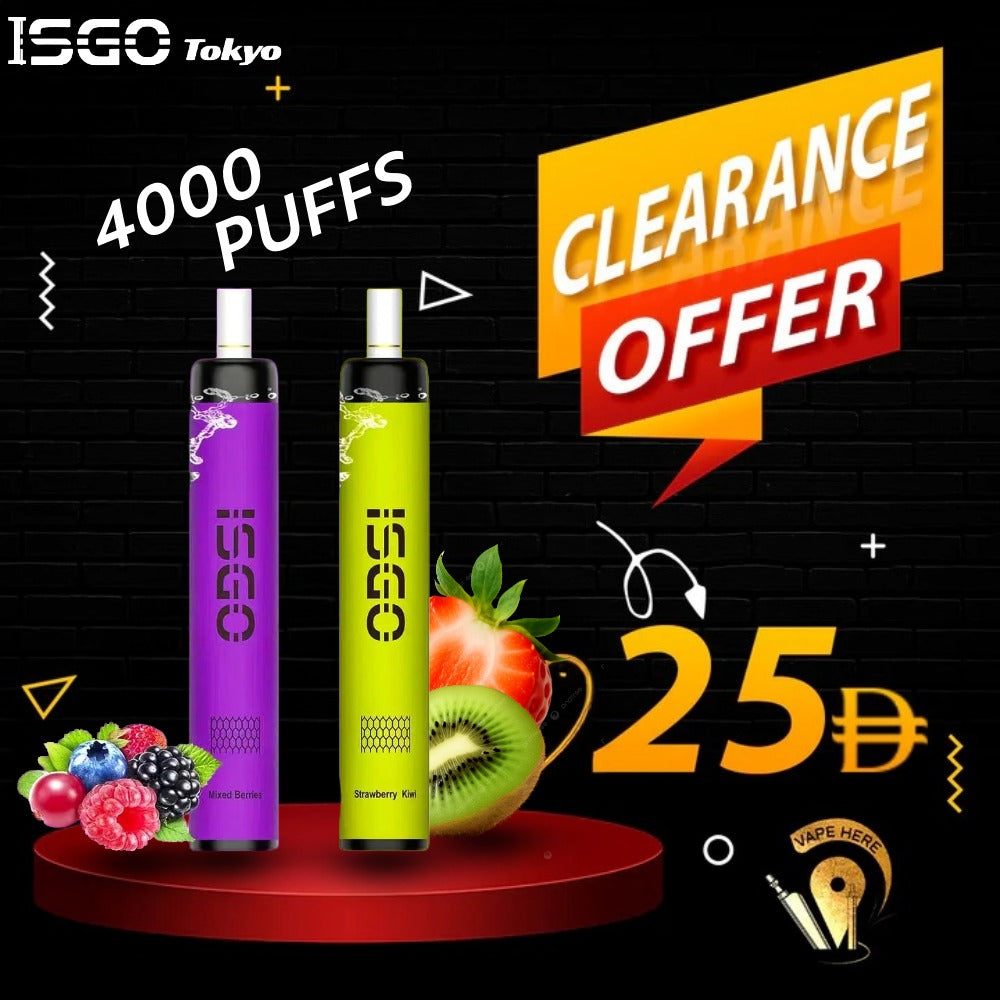 ISGO TOKYO 4000 PUFFS DISPOSABLE available to order Online from Vape Here Store UAE with a unique Delivery service in UAE, Abu Dhabi, Dubai, Al Ain, Ras Al Khaimah, Ajman, Sharjah, Ruwais