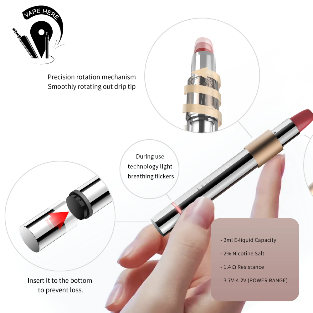 The LUCKY KISS LK600 Female Disposable Vape redefines elegance and functionality in the vaping world. Inspired by luxury beauty products, it features a lipstick-like design with a unique rotating nozzle and hygienic cap, ensuring both style and cleanliness. Crafted using premium mobile phone-grade materials, it delivers a refined, modern aesthetic tailored for fashionable women who value both quality and appearance.