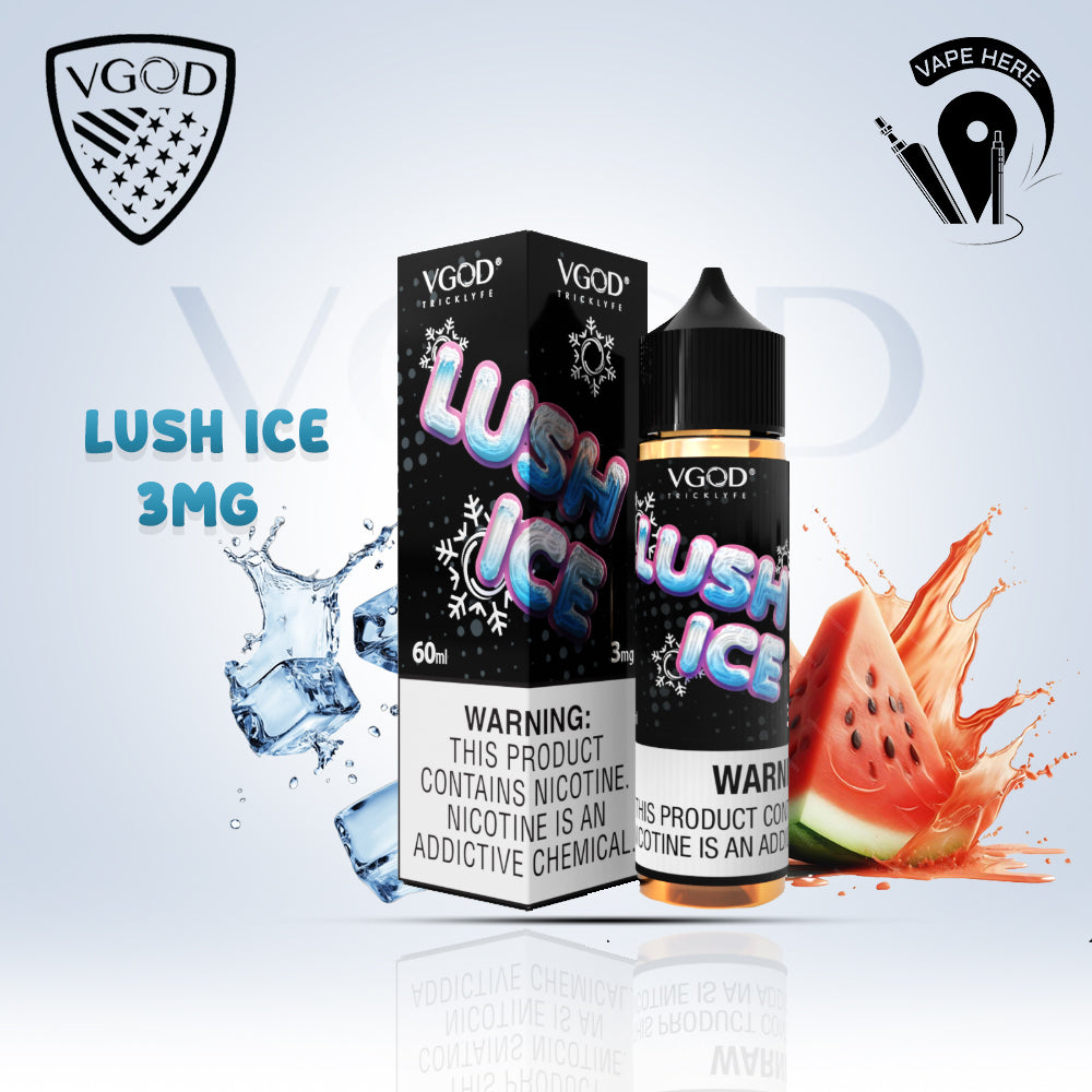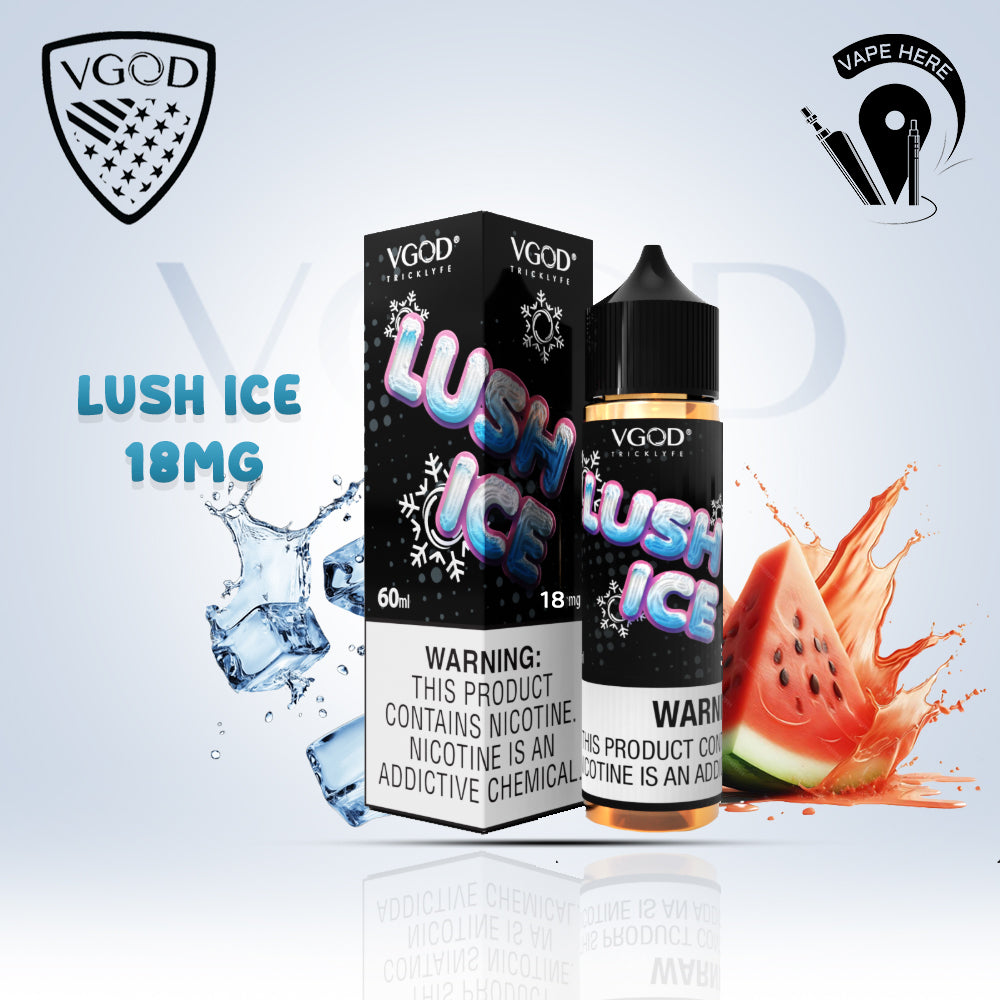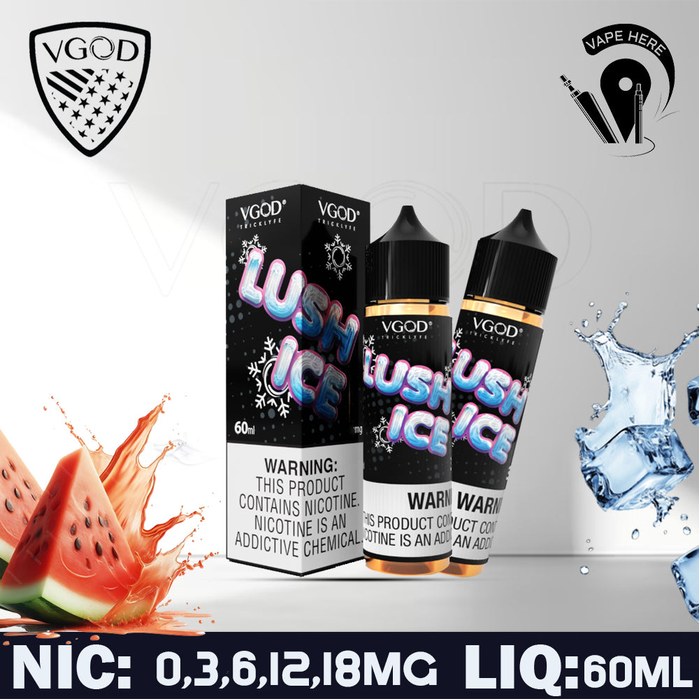 VGOD Lush Ice is a Delicious Burst of Fresh Watermelon on the Inhale with sweet undertones of Mixed Melons and smooth Menthol on the Exhale, providing a Smooth and Fruity All-Day Vaping Experience by VGOD Lush Ice.