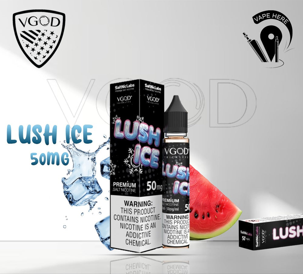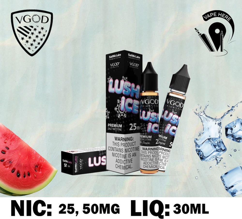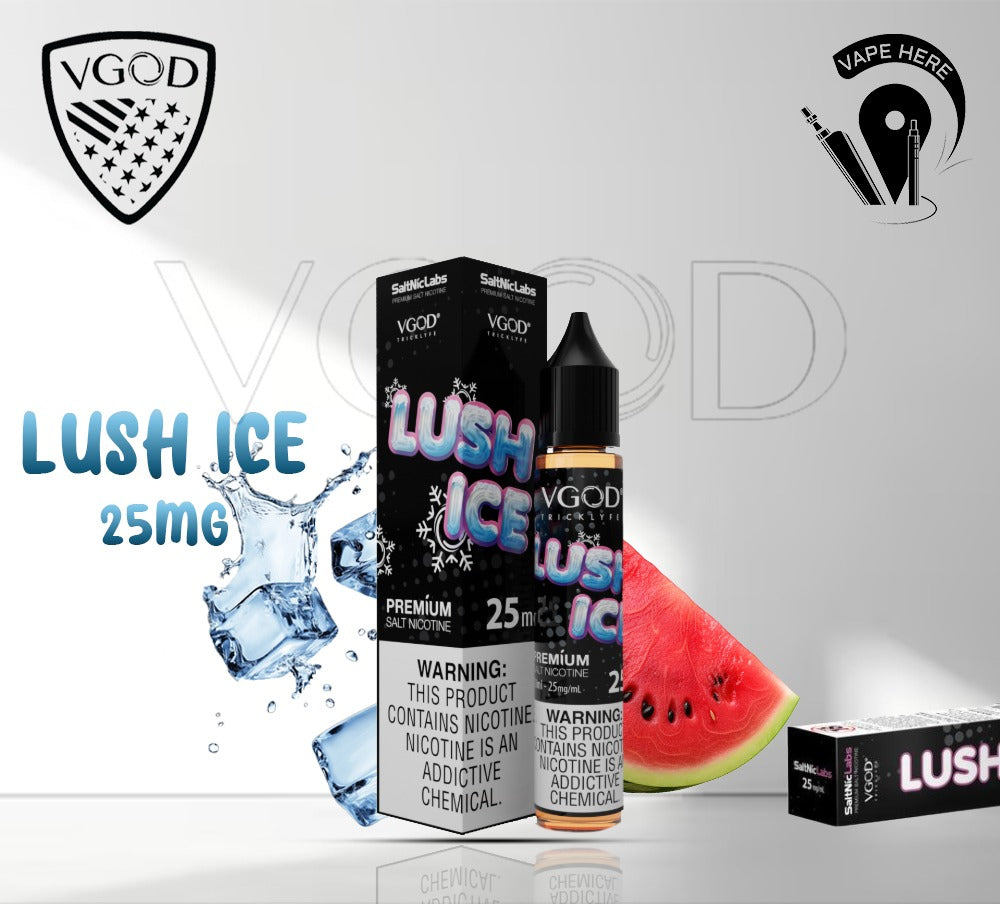 VGOD Lush Ice Nic Salts is a Signature watermelon candy flavor climaxing with a fresh breeze of menthol elevated with SaltNic.