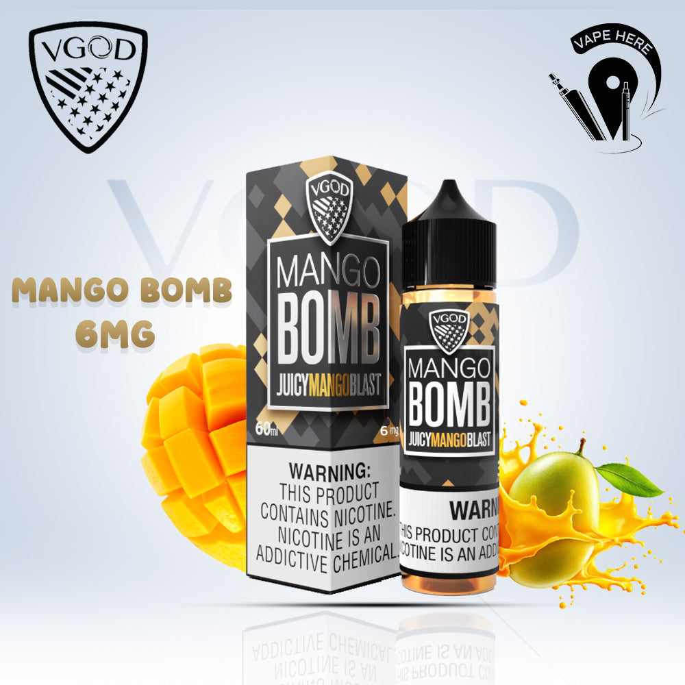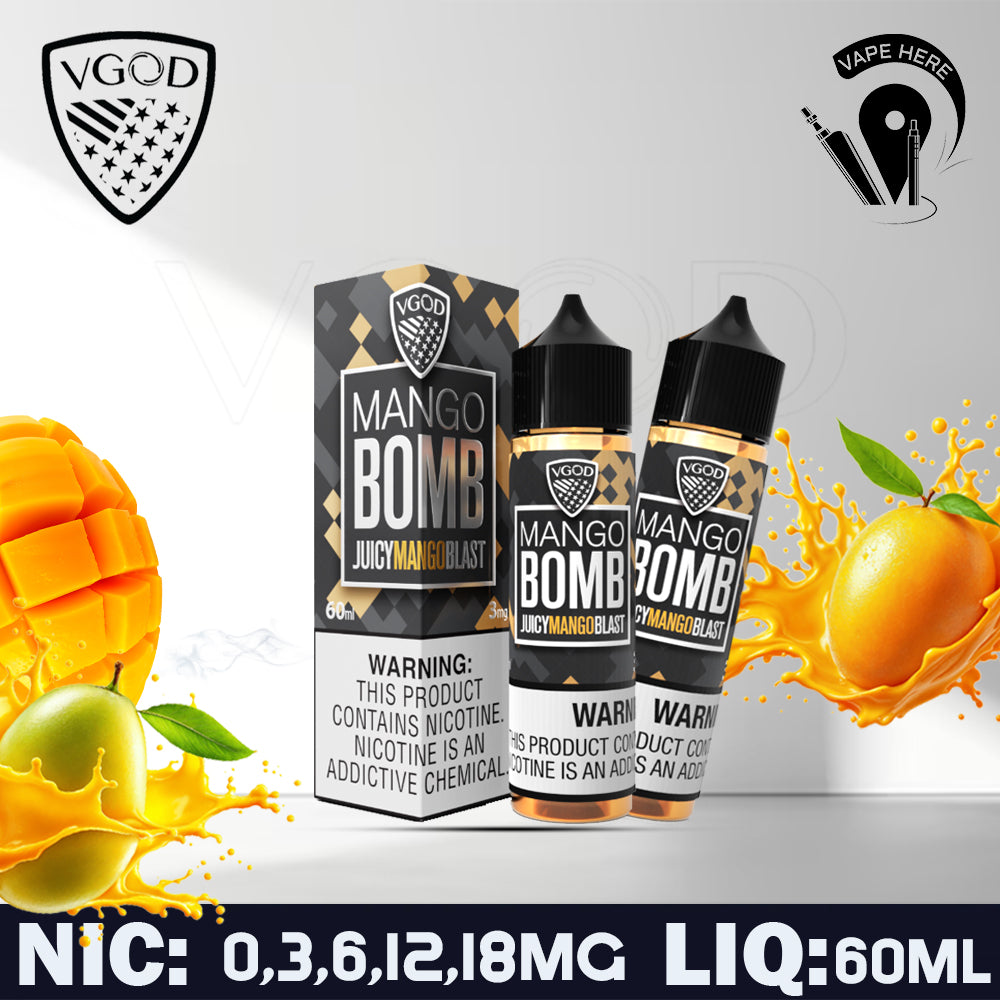 VGOD Mango Bomb Under a moonless celestial sphere, you make the climb up Mt. Bakur in search of sunrise with splatters of deep orange, yellow and red across the Bali sky. Reaching the summit the glowing sun begins to rise,it’s a perfect time to indulge in VGOD’s mouthwatering nectarous Mango Bomb! Your taste buds are instantly jolted with energized splashes of sensationally succulent, fully ripened and drippingly dense slices of fresh juicy mangoes. With each deliciously sweet pull of Mango Bomb, you watch the sun illuminate the world knowing it’s going to be a damn good day with VGOD Mango Bomb.