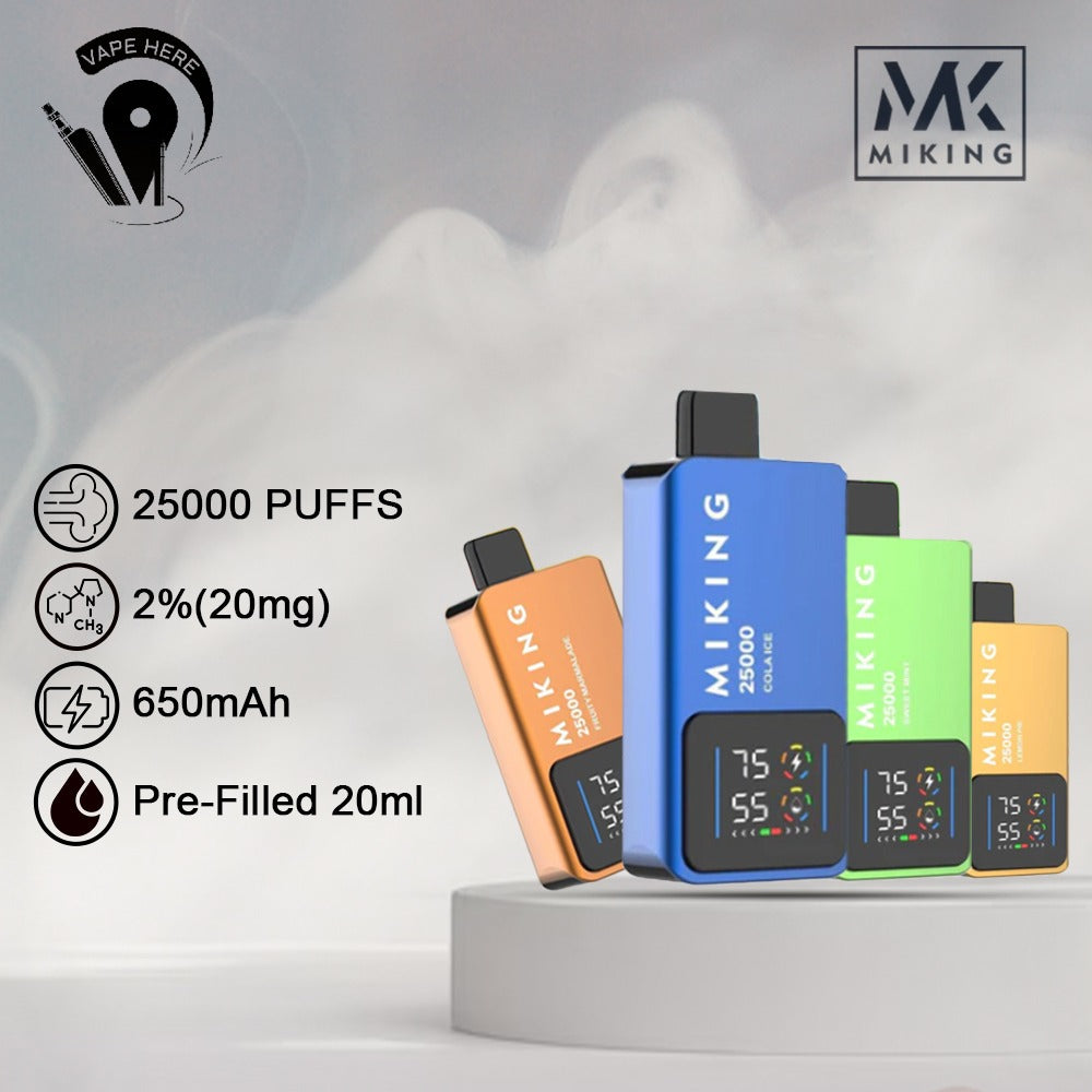 Order your Miking 25000 Puffs Disposable Vape from Vape Here Store and enjoy: