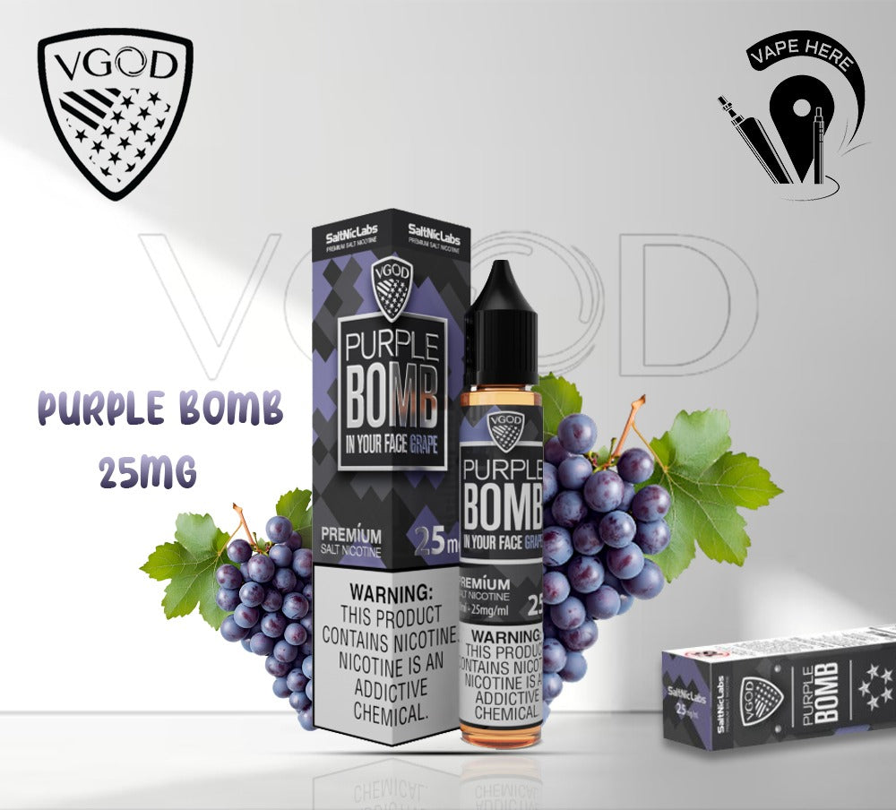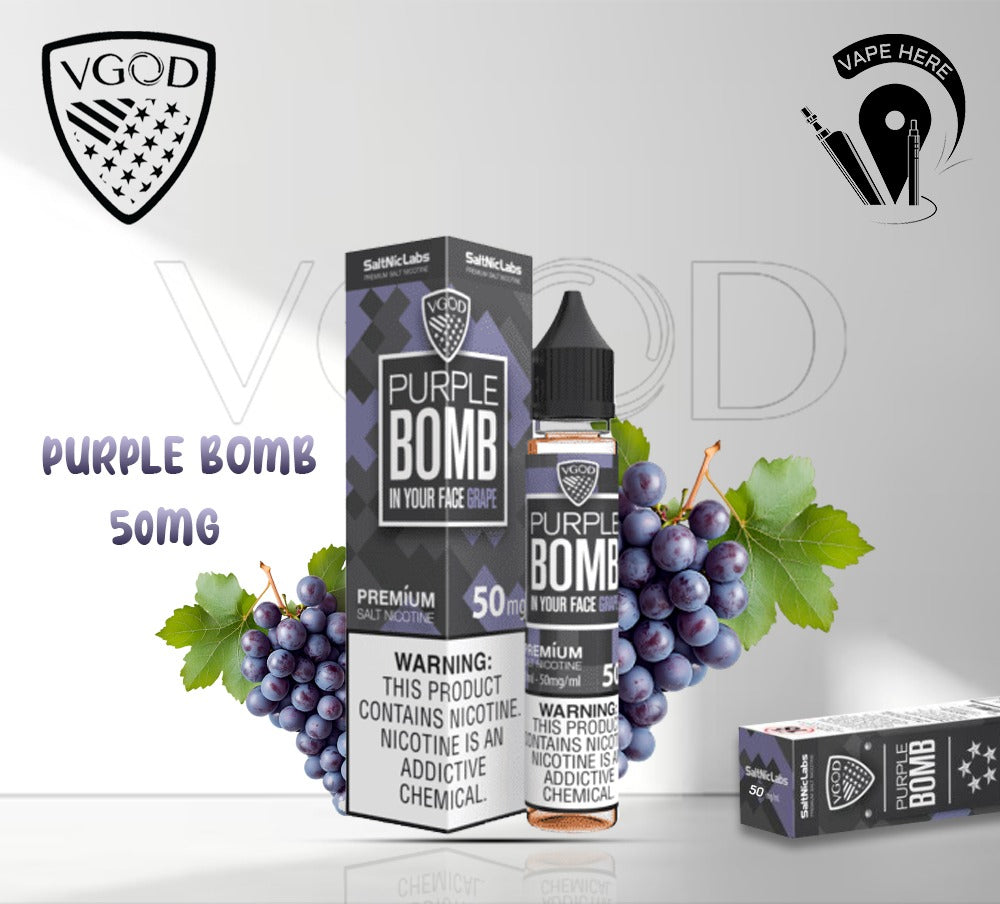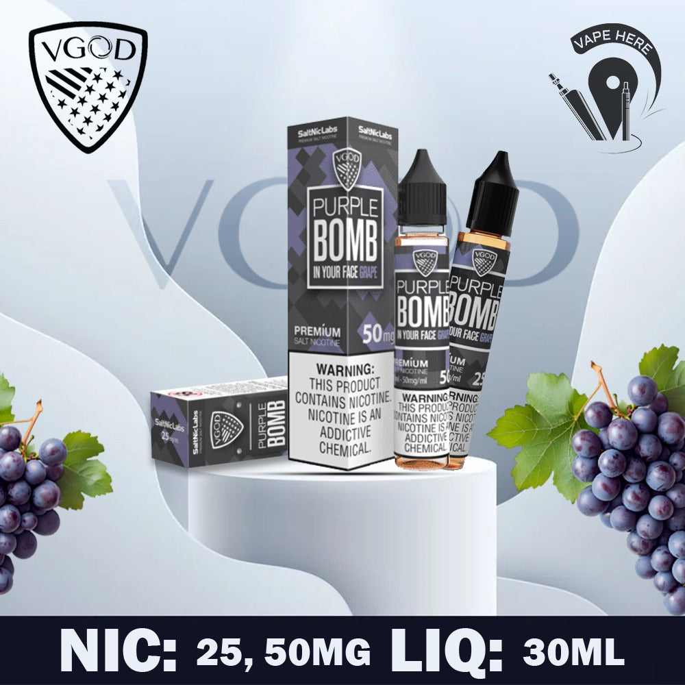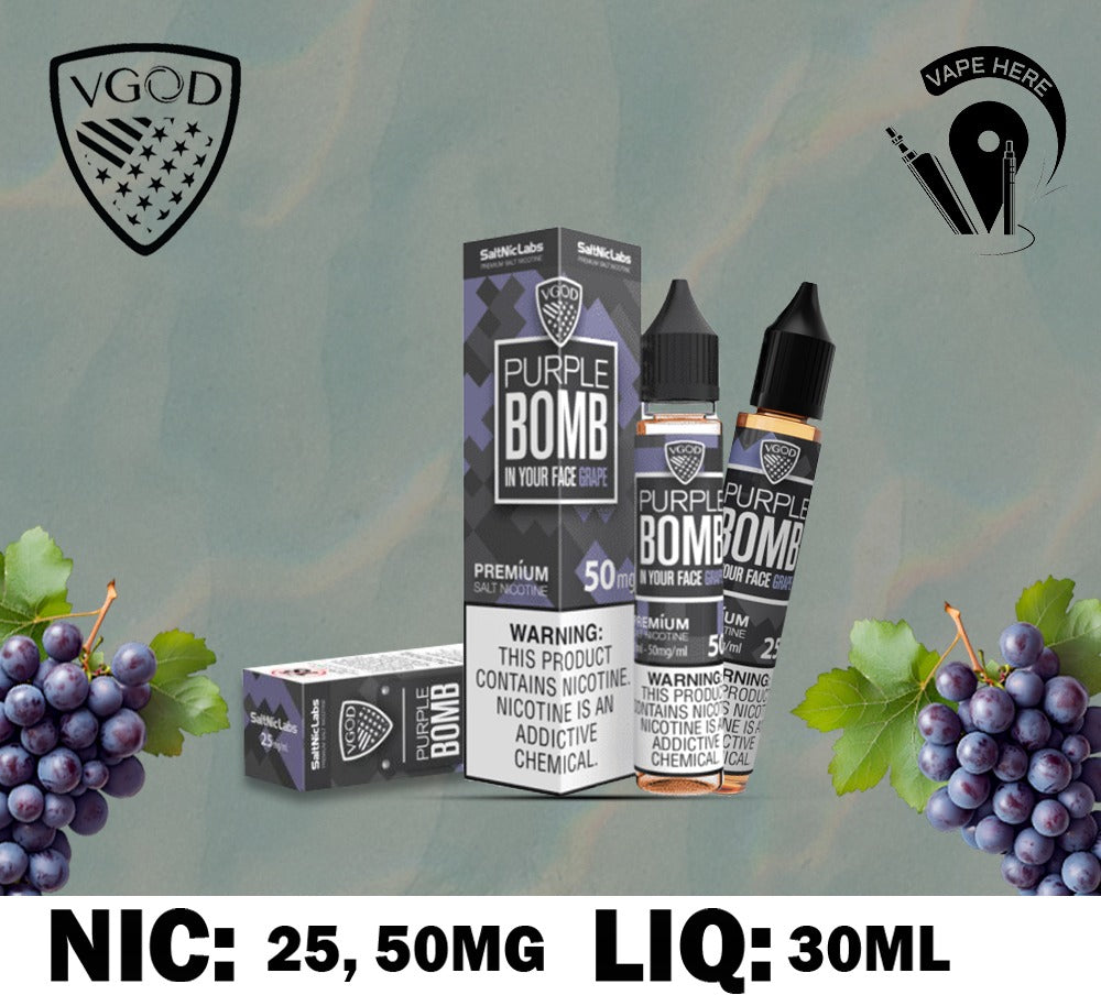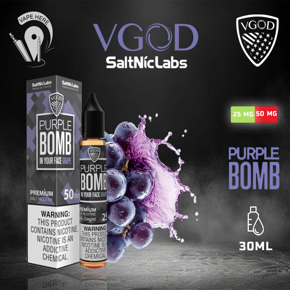 VGOD Purple Bomb Iced SaltNic is overflowing with freshly pressed Concord grape juice mixed with a candy coated grape candy for extra sweetness. This all day grape delight culminates with a refreshingly smooth icy exhale for all day satisfaction, we highly recommended VGOD Purple Bomb Nic Salts for ex shisha smokers.
