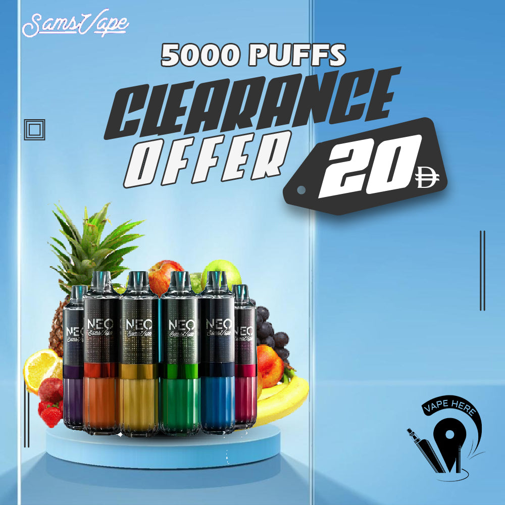 NEO by sam’s vape and Xtra is a premium disposable pod system that works and ready to use to replace smoking. Must try the awesome NEO 5000 puff Vape Pen Disposable! Featuring pocket-friendly portability, exceptional convenience, and intense enjoyment; the NEO 5000 Vape Pen Disposable is an ideal option either in the role of your “go to” or as a reliable backup to a bigger or higher performance system.